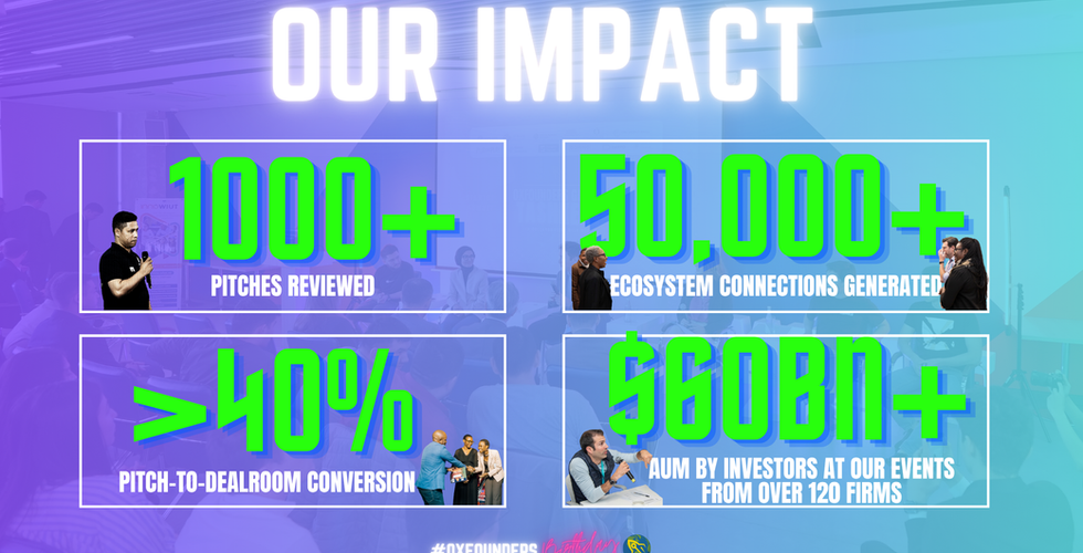 Across these two years, we've reviewed over 1,000 startup pitches, created more than 50,000 ecosystem connections at our events - involving investors from over 120 firms and representing more than $60bn AUM - and are proud to say that over 40% of all our selected pitching teams went through to investors' dealrooms post-event.